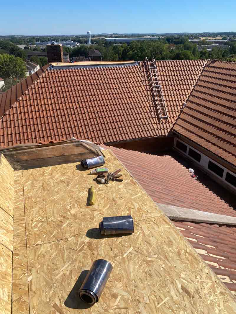 Walkers Roofing fully replaced the old roof with red/terracotta colour clay double roman tiles, creating a hard wearing, great looking roof that will last for generations.